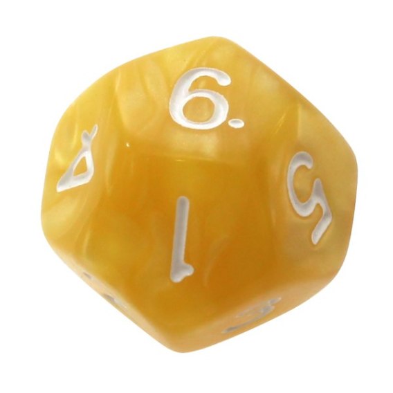 • Kość REBEL perłowa 12 Ścian - Cyfry białe - Żółta