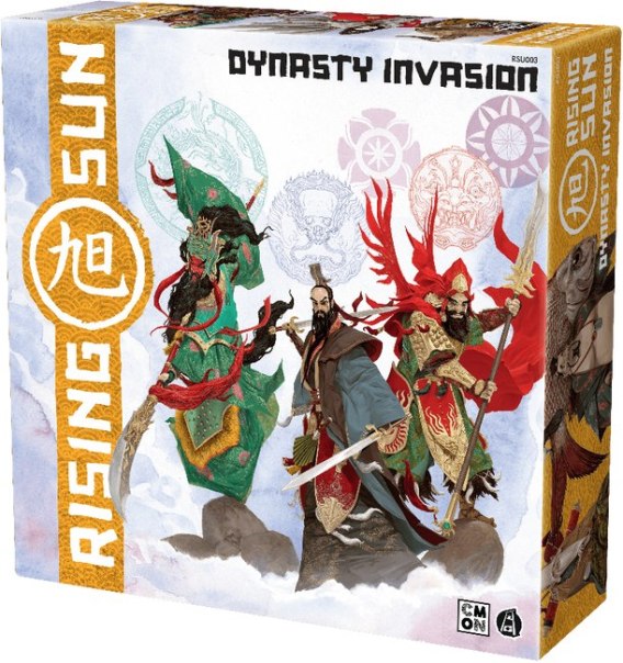 Rozszerzenie „Inwazja Dynastii” zawiera dwa nowe klany: Słońca i Księżyca. Dzięki włączeniu ich do gry możliwa staje się 6-osobowa rozgrywka w Rising Sun! Zwiększenie liczby graczy nie wiąże się z żadnymi dodatkowymi zasadami – obowiązują reguły gry podstawowej. Choć każdy Klan jest na swój sposób unikatowy, Klany z rozszerzenia „Inwazja Dynastii” mają dodatkową, wyjątkową cechę. Jako przybysze z innego lądu, kryjącego się za bezmiarem wód oceanu, nie wchodzą w przymierze z japońskimi Potworami, ufając w siłę własnych Siedmiu Bóstw Szczęścia. Uwaga jest to dodatek do gry - wymagana jest podstawowa wersja Rising Sun.