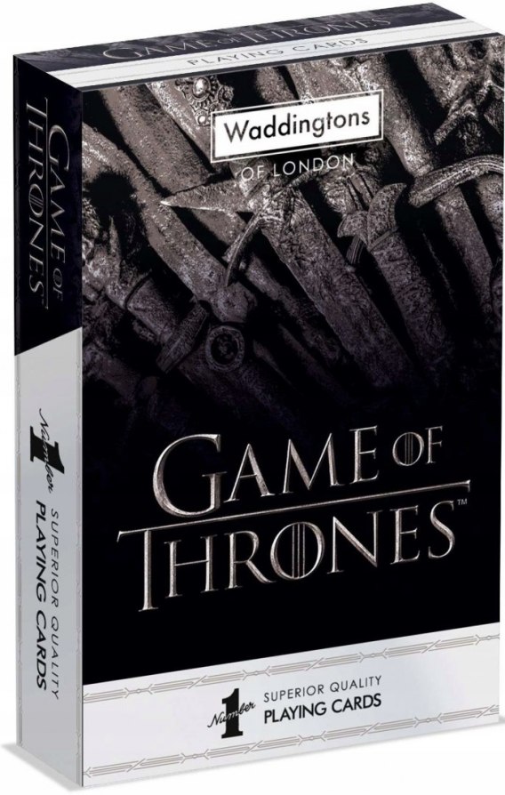 Klasyczna talia kart inspirowana serialem Gra o tron. Talia składa się z 55 kart do gry, wykonanych z dbałością o najdrobniejsze szczegóły. Karty przedstawiają bohaterów z kultowego serialu. Czy poznasz ich wszystkich? Najwyższa jakość - SUPERIOR QUALITY - gwarantowana przez brytyjską markę Waddingtons, obecną na rynku od 1905 roku.