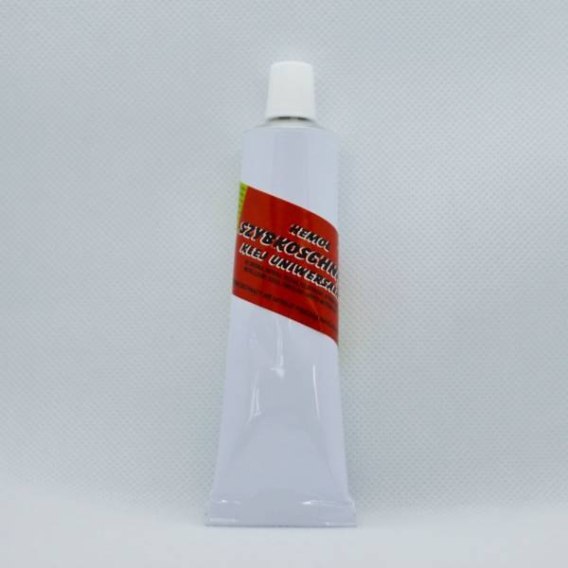 Szybkoschnący klej uniwersalny, nadający się do klejenia takich materiałów jak: papier, karton, drewno, materiał, styropian, polistyren, metal, guma, szkło, porcelana itp.